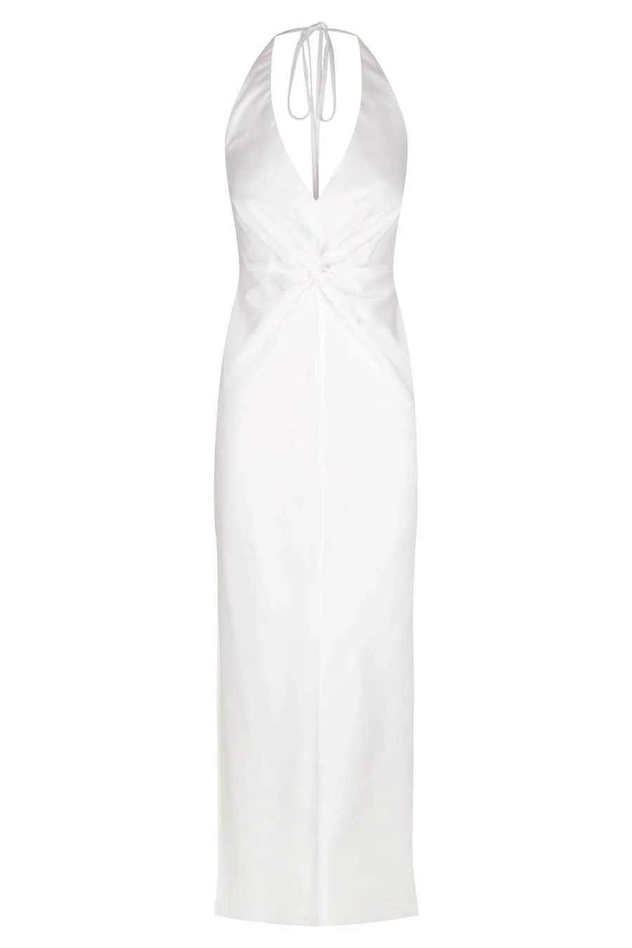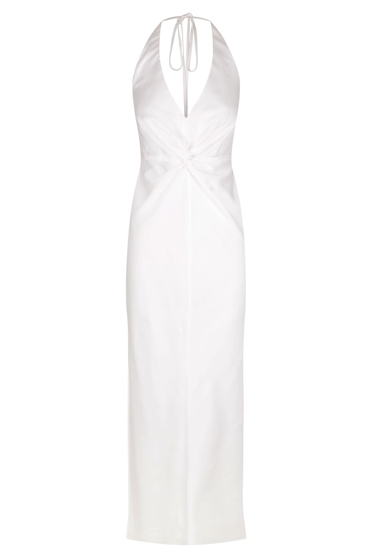 LUXE TWIST FRONT HALTER MIDI DRESS - IVORY